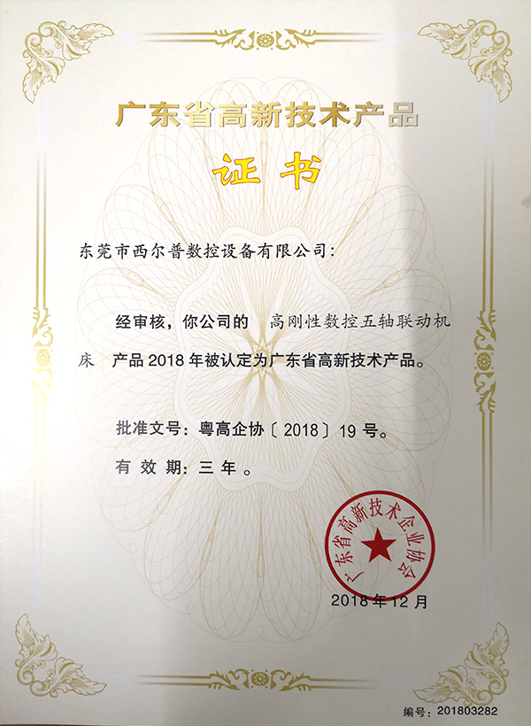 廣東(dong)省高新技(jì)術産品證(zhèng)書