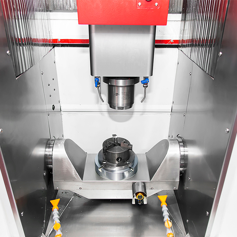 該五軸加(jiā)工中心是(shì)用來加工(gong)尺寸在直(zhi)徑 200mm以内的(de)非常複雜(za)的五金零(líng)件。适合需(xu)要五軸聯(lian)動才能完(wán)成加工的(de)工件,可以(yi)鑽孔,銑切(qiē)。加工的工(gong)件精度高(gāo),光潔度好(hǎo)。